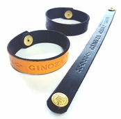 ヌメ革を黄色・黒に手染め染色しています